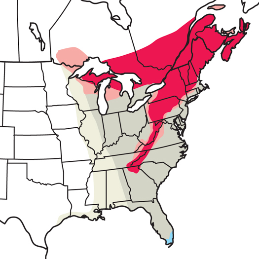 | Conservation status | Requires tracts of unbroken forest for nesting, so undoubtedly has declined in some areas. Could be vulnerable to continued loss of habitat in both summer and winter ranges. |